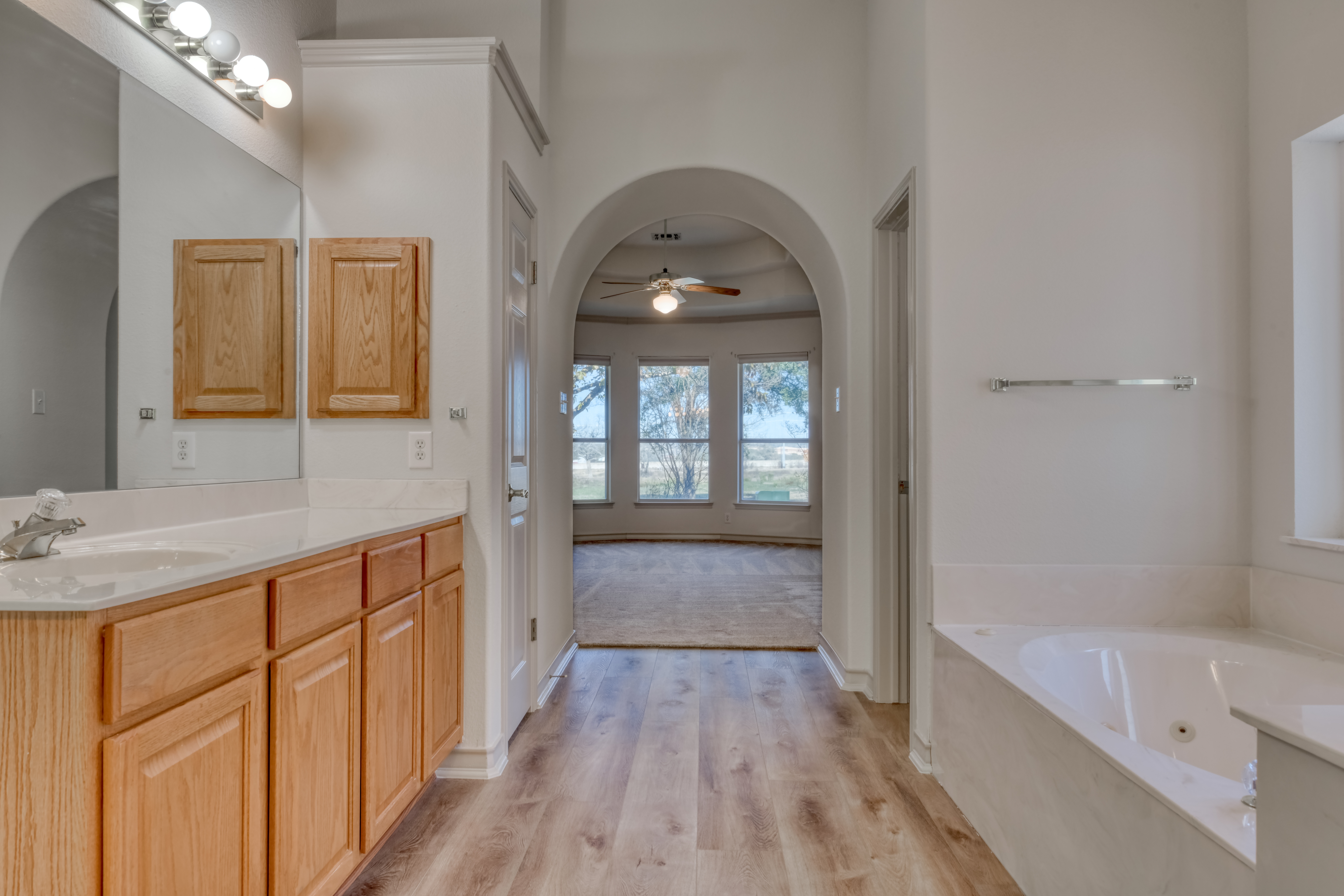 Wonderful custom home with great features. Recent updates include fresh interior paint, beautiful neutral quality vinyl plank flooring, and carpet in bedrooms and upstairs flex room.. You’ll love the oversized 3 bay garage, with plenty of extra storage room. Flexible floor plan. Tall ceilings enhance the feeling of space and light. Downstairs, the formal dining room could have an alternative use as downstairs office. Island kitchen with breakfast area and so much storage provided with so many kitchen cabinets! The kitchen opens to a large living area with cozy fireplace. Master retreat with elevated tray ceiling, enhanced privacy provided by split floorplan. En-suite master bath has separate tub and shower, abundant storage and closet space. Upstairs flex room with half bath could be used as game room, hobby/craft workshop. Upstairs also features walk-in access to attic HVAC systems. Well located with easy access to I-35, perfectly nestled between San Antonio and New Braunfels.